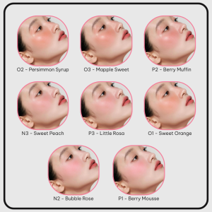 - P1 – Berry Mousse: Hồng baby là tone màu #bestseller cho style nhẹ nhàng và trong trẻo, đáng yêu như má em bé, phù hợp mọi tone da. Hiệu ứng sáng mặt và mềm mại cho undertone lạnh, da ngăm sẽ hơi ánh tím khi dặm nhiều lớp.